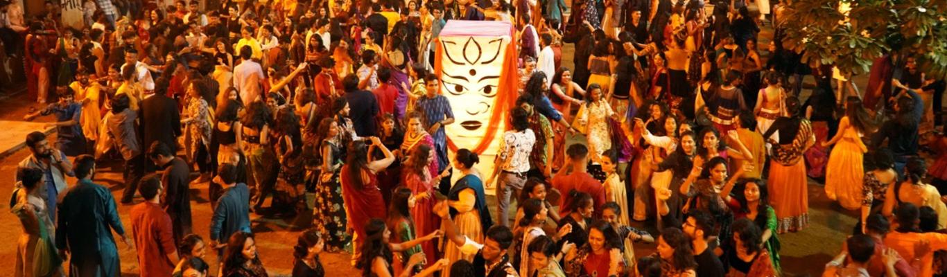 2019 is about Navratri celebration by NIFT Gandhinagar where everyone comes together To worship the Goddess and celebrating the Spirits of NIFT which represents aesthetics and mutual cooperation of the students, faculty members and staff.