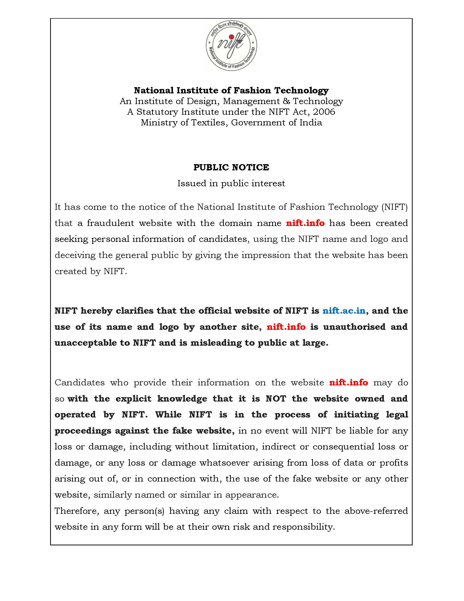 PUBLIC NOTICE FOR NIFT WEBSITE