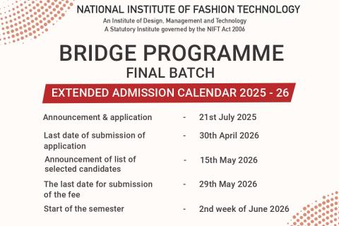 Set up in 1986, NIFT is the pioneering institute of fashion education in the country and has been in the vanguard of providing professional human resource to the textile and apparel industry. It was made a statutory institute in 2006 by an Act of the Indian Parliament with the President of India as ‘Visitor’ and has full fledged campuses all across the country. Over the years NIFT has also been working as a knowledge service provider to the Union and State governments in the area of design development and positioning of handlooms and handicrafts.