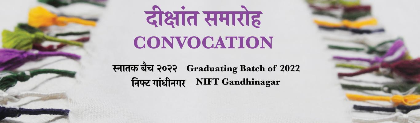 निफ्ट गांधीनगर ने 8 अक्टूबर, 2022 को 2022 की कक्षा के लिए अपना दीक्षांत समारोह आयोजित किया। निफ्ट गांधीनगर के निदेशक प्रो. (डॉ.) समीर सूद ने स्वागत भाषण दिया और अकादमिक रिपोर्ट प्रस्तुत की। निफ्ट की डीन अकादमिक प्रो. (डॉ.) वंदना नारंग ने स्नातकों को दीक्षांत शपथ दिलाई।