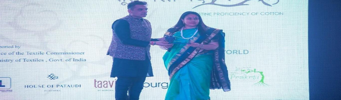 Prof. Sood highlighted ‘Kasturi Cotton,’ an initiative fostering a distinctive identity for Indian Cotton, supported by the Government of India, Textile Trade Bodies, and Industry. The showcase unfolded through five mesmerizing sequences, each representing a profound concept from the vedas: ब्रह्म ‘BRAHM~’: THE TOTALITY OF EXISTENCE by House of Pataudi, आत्म ‘AATMAN~’: THE SELF by Prakriti, संसार ‘SAMSARA~’: EXTERNAL CYCLES by Triburg, कर्म ‘KARMA Yoga~’: THE ACTIONS by Centre of Excellence for Khadi (CoEK), मोक्ष ‘MOKSHA~’: LIBERATION FROM THE EXTERNAL CYCLE by Taavi