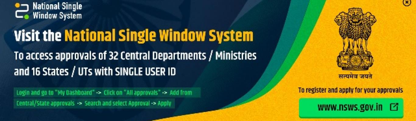 The National Single Window System has access to over 100 Central level approvals and State Single Window Systems of 14 States/ UTs with one user id and password